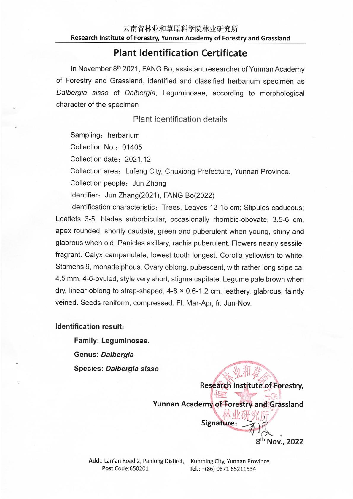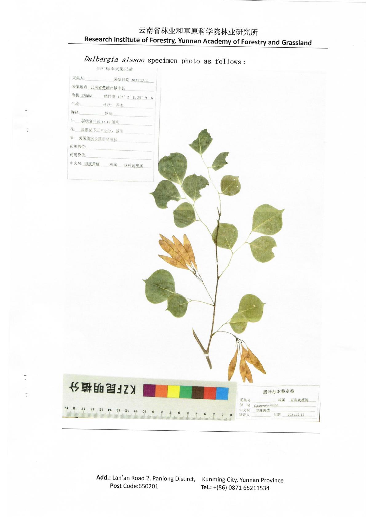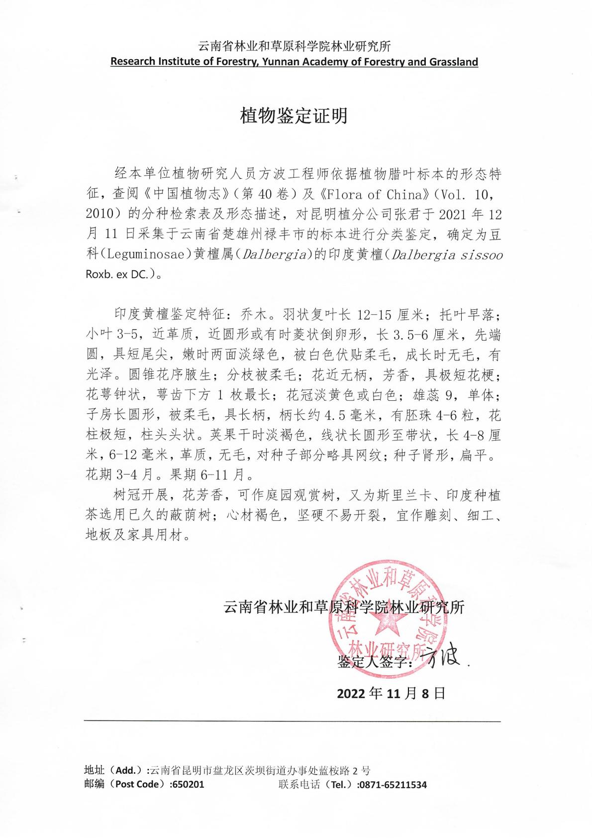 经本单位植物研究人员方波工程师依据植物腊叶标本的形态特征,查阅《中国植物志》(第40卷……